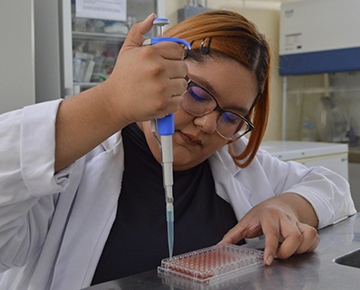 Xatzibe Alejandra Pérez Peña, estudiante de la Maestría en Ciencias de la Nutrición y Alimentos Medicinales, y César Antonio Sánchez Cárdenas, estudiante del Doctorado en Biotecnología, trabajaron en los laboratorios del Departamento de Ciencias Químico-Biológicas y Agropecuarias bajo la tutoría del académico Noé Ontiveros Apodaca.